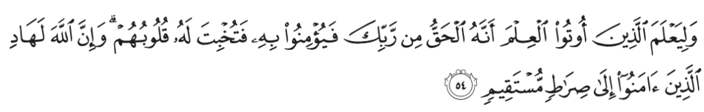 1. Quran Surat Al Hajj Ayat 54: Sesungguhnya Allah memberikan hidayah kepada orang yang beriman pada jalan yang lurus