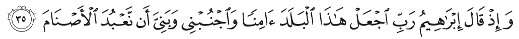 - Nabi Ibrahim masih memohon (berdoa) “dan jauhkanlah saya berserta anak cucuku daripada menyembah berhala2”, dalam Al-Quran Surat Ibrahim ayat 35: