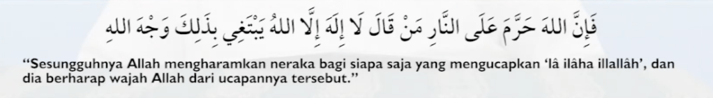 - La ilaha illallah adalah kalimat penyelamat dunia dan akhirat, d Nabi Yunus ‘alaihi salam diselamatkan dalam perut ikan karena kalimat la ilaha illallah, dalam Al-Quran Surat Al-Anbya ayat 87