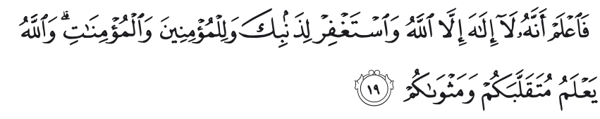 - Dalam Al-Quran Surat Muhammad ayat 19 dan dalam hadist