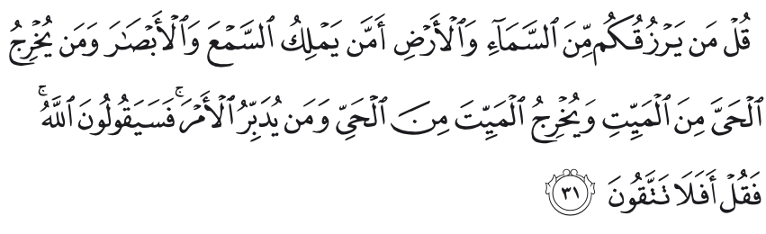 Sebagaimana dalam firman Allah dalam Al-Quran Surat Yunus 31: