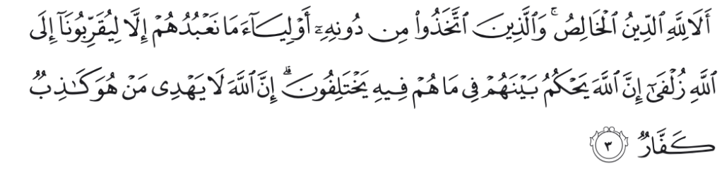 “Tidaklah kami menyembah mereka, kecuali supaya mereka mendekatkan kami kepada Allah dengan sedekat-dekatnya.”