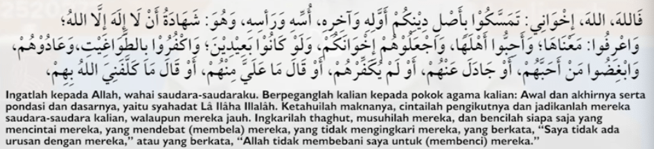 Ingatlah kepada Allah, wahai saudara-saudara ku. Berpeganglah dengan pokok agama kalian. Ini anjuran untuk berpegang teguh pada agama dikarenakan memang kita diperintah untuk perpegang teguh sebagaimana firman Allah “Berpegang teguhlah kalian semua dengan tali Allah dan jangan kalian bercerai-berai”.