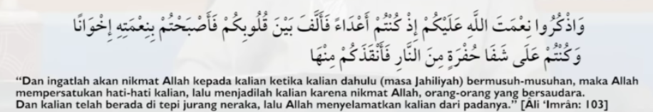 - Jadikanlah mereka saudara-saudara kalian, walaupun mereka jauh, bukan kerabat, bukan tetangga, bukan sekampung bahkan bukan senegeri, dimanapun mereka berada.