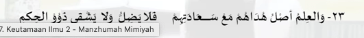 Bait Syair 23: Wal ilmu ashlu hudahum, ma’ sa’a datihim, fala yadhilu wala yashqo dzaul hikami