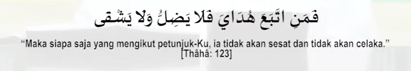 Firman Allah surat Thaha ayat 123: Siapa yang akan mengikuti petunjuk-Ku, ia tidak akan sesat dan tidak akan celaka. Dijamin siapa yang berpegang dengan ilmu, akan sumber petnujuknya. Sehingga selalu diatas petunjuk. Ini adalah sumber kebahagiannya dan tidak akan sengsara selama-lamanya. Sebaliknya kejahilan membawa pada kesesatan.