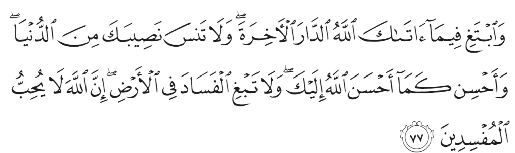 “Carilah apa yang Allah datanglkan kepadamu dair kehidupa akhirat dan jangan lupa bagian mu dari kehidupan dunia”. Sehingga jangan dibalik dengan cari dunia tapi jangan lupa shalat, puasa, dan ibadah lainnya. Perintah Allah adalah perintah mencari akhirat tapi jangan lupa kehidupan dunia. Apabila berprinsip seperti ini, mencair dunia pun akan menjadi ibadah. Kapan mencari dunia akan bernilai ibadah?. Kuncinya adalah dengan mempelajari ilmu. Karena dengan ilmu yang dipelajari, bisa mengetahui pintu-pintu ibadah yang tidak diketahui oleh orang lain.