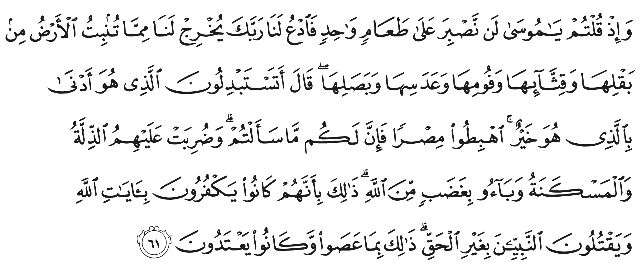 Peringatan besar dalam Al-Qur’an bahwa mengganti sesuatu yang baik dengan yang lebih rendah?”. Teguran terhadap bani Israil yang sudah diberi Allah berbagai nikmat yang sangat besar: makanan yang luar biasa. Akan tetapi mereka mencari hal yang rendah: bawang dan kacang-kacangan.