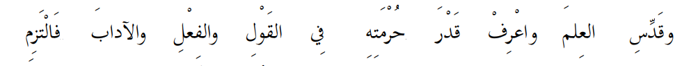 Bait Syair 62: Sucikanlah ilmu (dari perkara yang tak layak) dan kenalilah kadar kesuciannya … Baik dalam perkataan dan perbuatan, kemudian lazimiah adab-adabnya.