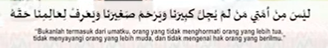 Bukan dari umatku, orang yang tidak mengagungkan orang besarnya, tidak merahmati orang kecilnya. Dan tidak mengenal hak orang yang berilmu ditengah mereka.
