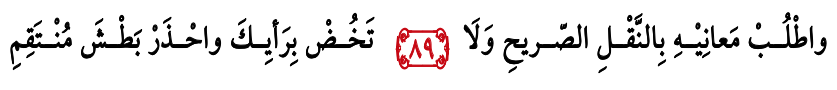 Bait Syair 89: Carilah makna-maknanya dengan penukilan yang jelas, dan jangan kamu menyelam dengan pendapatmu (dengan akalmu). Dan hati-hati dari balasan Allah yang maha membalas (peringatan).