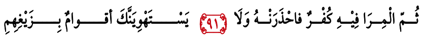 Bait Syiar 91: Kemudian berdebat dengan Al-Quran adalah kekafiran. Artinya mengingkari atau menolak ayat-ayat dalam Al-Quran. Maka hati-hati jangan sampai ada sekolompok kaum membuat kamu tersesat.