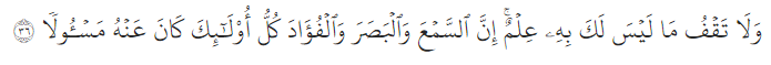Kemudian Allah berfirman dalam QS Al-Isra ayat 36, jangan kalian berhenti diatas sesuatu yang kalian tidak punya ilmu atasnya.