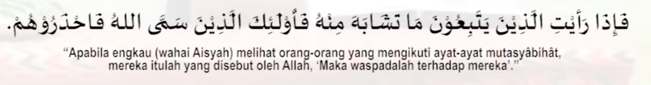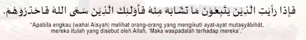 Apabila engkau melihat orang-orang yang mengikuti mutsyabih, mereka inilah yang disebut dalam Al-Qur’an, maka berhati-hatilah dari mereka.