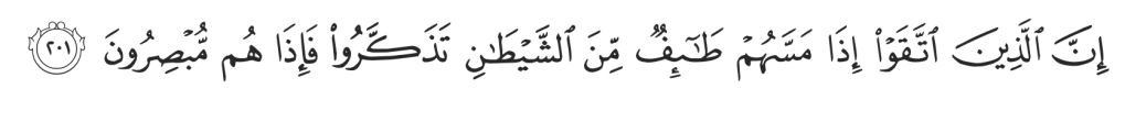 Sebagaimana juga dalam Surat Al-A’raf ayat 201: orang yang bertaqwa apabila sudah pernah disentuh oleh gangguan syaiton, maka mereka akang mengingat yang menyebabkan pandangannya lebih tajam.