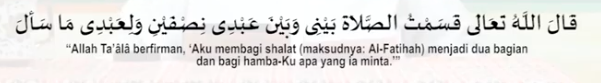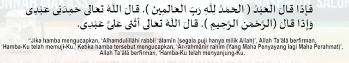 Jadi setiap kita membaca ayat dalam surat Al-Fatihah, Allah memberikan balasannya. Sehingga ketika membaca Al-Qur’an seolah-olah kita berbicara kepada Allah. Karena itu kita harus perhatikan dan fokus ketika membaca Al-Qur’an.