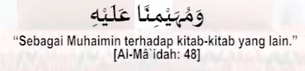 Muhaiminan adanya yang menafsirkan sebagai saksi, sebagai hakim yang memutuskan. Sebagaimana dalam ayat berikut: