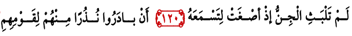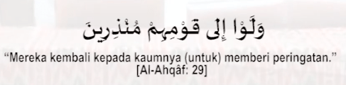 Jin setelah mendengar Al-Qur’an, mereka segera memberi peringatakan kepada kaumnya. Maknanya ketika Jin mendengar Al-Qur’an, mereka langsung beriman. Kemudian kembali menjadi peringatan pada kaumnya, sebagaimana diterangkan dalam surah Al-Ahqaf 29-31