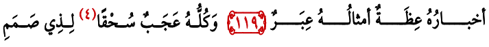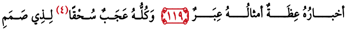 Dalam syair 119, berita-berita Al-Qur’an itu nasihat yang benar. Banyak kisah-kisah yang berulang. Seperti kisah nabi Musa ada di beberapa tempat dalam Al-Qur’an, namun selalu ada nasihat-nasihat yang berbeda pada tempat yang lainnya.