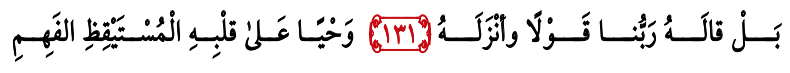 Dalam syair 131, Bahkan Al-Qur’an adalah Allah yang berfirman dalam bentuk ucapan dan Allah yang menurunkannya sebagai wahyu ke hati Nabi Muhammad Shallallahu ‘Alaihi Wasallam, yang selalu terjaga dan paham.