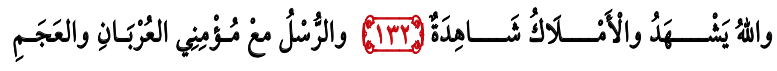 Dalam bait Syair 132, Allah yang mempersaksikan hal tersebut demikian pula seluruh Malaikat mempersaksikan demikian pula para rasul berserta orang yang beriman dari kalangan Arab maupun Ajam.
