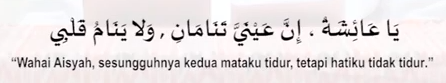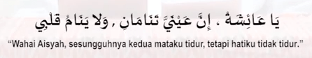 Nabi Muhammad shallallahu alaihi wasallam selalu terjaga, walaupun sedang tidur hati beliau tetap terjaga. Sebagaimana dalam Hadist Riwayat Bukhari dan Muslim: