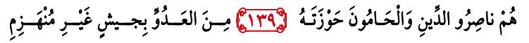 Mereka adalah yang menolong dan menjaga agama dari benteng (hal pokok yang dipelihara. Dijaga dari musuh, dengan bala tentara yang tidak terkalahkan.