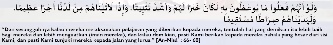 - Kehidupan harus selalu terukur, berjalan dengan yang paling baik yaitu yang paling dicintai Allah.