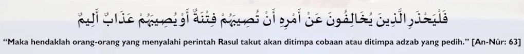 Apabila berpaling dari sunnah, maka ini adalah sebab musibah dan malapetaka. Dikhawatirkan akan menimpa umat ini, hal-hal yang tidak menyenangkan, sebagaimana firman Allah: