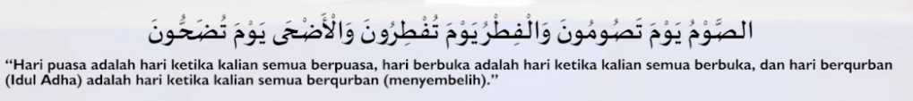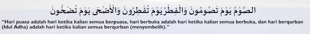 Sebagaimana didalam penentuan masuknya Bulan Dzulhijjah juga diarahkan kepada kebersamaan, sebagaimana Nabi Shalallahu alaihi wasallam bersabda “Apabila kalian melihat hilal bulan Dzulhijjah”. Dalam riwayat Imam At-Tirmidzi dari Abu Hurairah Radhiallahu anhu, Rasulullah Shalallahu alaihi wasallam bersabda:
