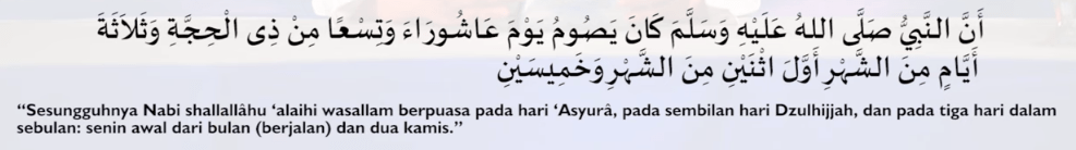 Nabi berpuasa 9 hari di bulan Dzulhijjah, disyariatkan berpuasa dari tanggal 1-9 Dzulhijjah.