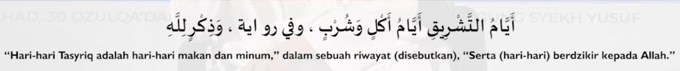 Hari-Hari Tasyrik adalah hari makan-minum serta berdzikir kepada Allah Ta’ala