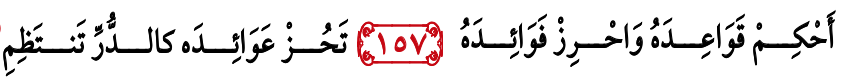 Syair 157: Permantaf kaidah-kaidahnya, kaidah-kaidahnya hendaknya kamu ambil, maka engkau akan mendapatkan hasil yang bermanfaat seperti mutiara-mutiara yang kamu pasang.