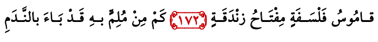 Bait syair 172: Kamus filsafat adalah kunci Jindik (kemunafikan), kekafiran yang megeluarkan dari agama. Betapa banyak orang yang mempelajari fisalafat, akhirnya kembali dengan penyesalan.