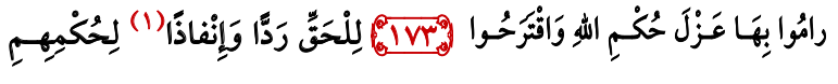 Syair 175: Kamu jadikan akal itu sebagai hukum pada setiap perselisihan. Karena diwahyu dalam Al-Quran tidak ada hukum bagi orang yang berhukum