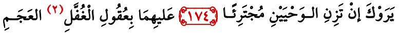 Bait Syair 174:Mereka memperlihatkan kepada engkau, berpendapat kepada Al-Q-ur’an dan Hadist dengan penuh kelancangan. Dengan akal-akal orang yang banyak lalai.