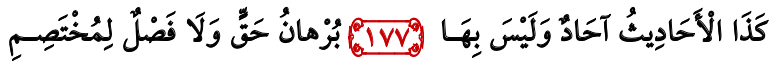 Syair 177: demikian pulan hadist-hadist ahad bagi mereka. Artinya tidak bisa dijadikan