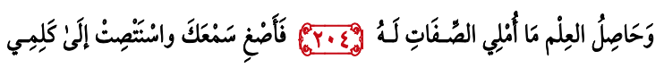 Syair 204: Orang yang telah mendapat ilmu itu adalah orang yang sifatnya akan saya terangkan. Maka pasang pendengaranmu baik-baik dan dengarkanlah dari ucapan ku.