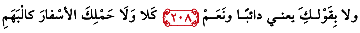 Syair 208: Bukan pula ucapan kamu selalu kalau ditanya, maka menjawab dengan iya dan tidak. Bukan pula ilmu itu membawa barang-barang bawaan seperti hewan ternak.