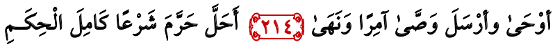 Syair 214: Memberi wahyu kepada siapa yang dikehendaki dan mengutus Rasul kepada siapa yang dikehendaki. Hal ini terdapat dalam beberapa ayat dalam Al-Qur’an.