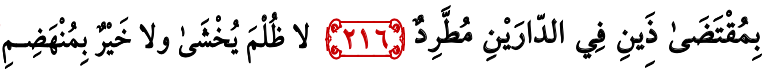 Syair 216: Berdasarkan seluruh hal ini di dunia dan akhirat menjadi hukum tetap. Karena itu tidak ada kedholiman yang dikhawatirkan.