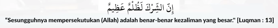 “Dan (ingatlah) ketika Luqmān berkata kepada anaknya pada waktu ia memberi pelajaran kepadanya, “Hai anakku, janganlah kamu mempersekutukan Allah, sesungguhnya mempersekutukan (Allah) adalah benar-benar kezaliman yang besar”. (Luqman: 13)