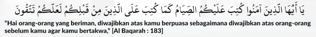 Dalam hal ini orang beriman dipanggil, untuk diwajibkan berpuasa. Baru setelah dijelaskan keutamannya yaitu agar bertakwa.