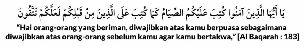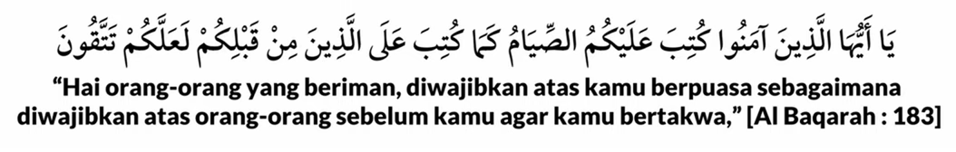 Maksud utama dari puasa adalah Taqwa kepada Allah ﷻ. Sebagaimana firman Allah: