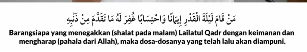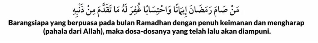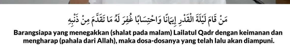 Barang siapa yang berpuasa, menegakan shalat malam, lailatul qadr dengan keimanan dan mengharap pahala dari Allah, maka dosa-dosanya yang telah lalu akan diampuni.