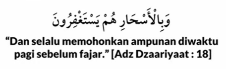 Sifat orang beriman beristigfar di waktu sahur, seperti membaca astagfirullah, atau sayidul istigfar.