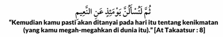 Hadirkan pertanyaan ini bahwa kita akan ditanya di akhirat. Kita akan ditanya dan di hisab oleh Allah akan karunia yang telah kita dapatkan