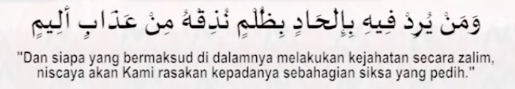 Berniat untuk berbuat ilhat di tanah haram sudah diancam dalam Al-Qur’an Surat Al-Hajj, ayat 25: