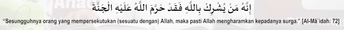 - Bahwa kesyirikan mewajibkan pelakunya untuk masuk kedalam neraka, sedangkan tauhid mewajibkan pelakunya untuk masuk ke dalam surga.