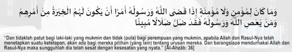 Seorang mukmin apabila sudah ada printah dari Allah dan Rasul-Nya, maka tidak ada pilihan lain.